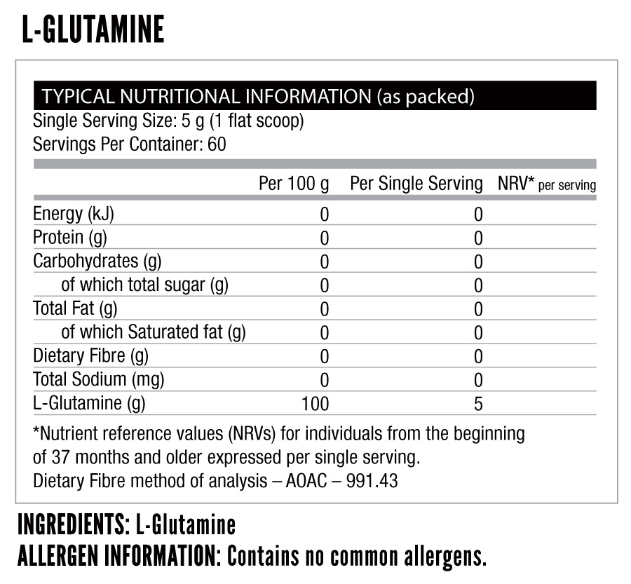 NUTRITECH L-GLUTAMINE has been formulated to support muscle recovery, endurance, and overall performance. As the most abundant amino acid in muscle tissue, L-Glutamine plays a critical role in protein synthesis, reducing muscle breakdown and supporting post-workout recovery. Supplementing with L-GLUTAMINE helps maintain a positive nitrogen balance, strengthen immune function, and promote gut health, ensuring your body stays primed for peak performance.