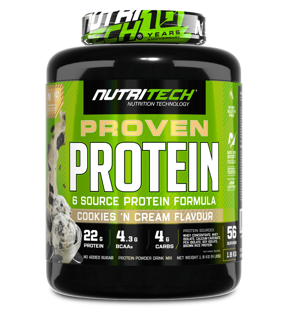 PROVEN NT PROTEIN works extremely well as the ultimate post-workout recovery shake, but is also perfect for between meals or as a before bedtime snack, loaded with 22 grams of protein per serving to help build muscle and complimented with 4.3 grams of naturally occurring Branch Chain Amino Acids to support recovery.